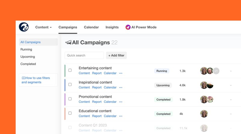 Imagine automating your social media game, publishing across platforms with a single click, and diving deep into analytics without the hassle. With the campaign feature in StoryChief, you can organize and track performance for each of your chosen content pillars.