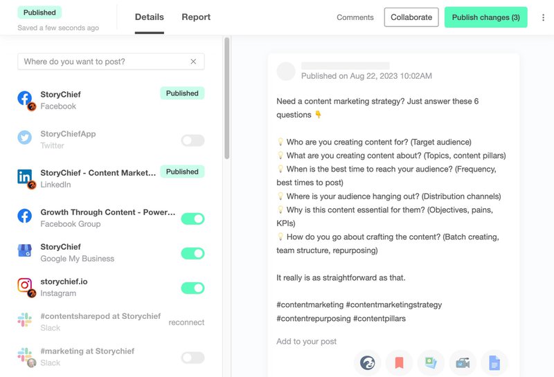 Using a content planning and social media marketing tool for this is highly recommended. With StoryChief, you can easily plan and publish your content across multiple channels without the need to copy-paste or log in to each one separately. Try it free.